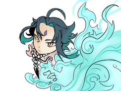 Hi, I'm Starrie Wolf, the Writing Mod for this zine. Xiao is one of my favorite characters in Genshin because of the potential his backstory has for some of my favorite fiction genres, and I'm so glad he came home for me. I've been a fanfic writer for 15+ years and currently write scientific papers for my day job. Previous zines I've been in include Road to Gold (Writing and Social Media Mod), FMAB Travel Anthology (Contributor), RevHOLT (Contributor), and several more.